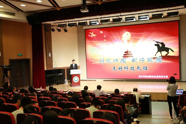 大学生软件科技创新创业基地经学校批准于2007年在原软件学院建立,面向全校大学生开放。该党支部是建立在基地的功能型党支部,现有师生党员12名。基地党支部把党建和科技创新紧密结合,通过举办“信仰讲坛”,参与“我来讲、我来听”党课评比大赛和建设科技创新平台等引领青年成长;以“学长带学弟学妹”的方式开展低年级学生基础课程培训、本科生专业培训和学术交流讨论会;开发阳光邑上社区居民信息管理系统和旺泉街道OA办公平台,奉献社会服务他人。党支部坚持“不忘初心,知行合一”的理念,发挥战斗堡垒作用和党员先锋模范作用,带动学生积极参与科技创新实践,努力打造充满朝气、敢于探索的先锋党员队伍。