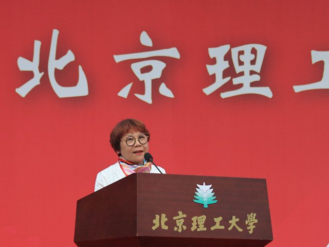 机械与车辆学院薛庆教授代表全体教师祝同学们毕业快乐。她表示北理工带给了同学们“延安根,军工魂,北理梦,国防情”,也带给同学们丰富多彩的校园生活。毕业临别之际,她把“情怀”“学习”“坚持”送给同学们,希望大家牢记并践行“德以明理,学以精工”的校训精神,期待未来在朋友圈中仍能看到同学们的炽热和激情。