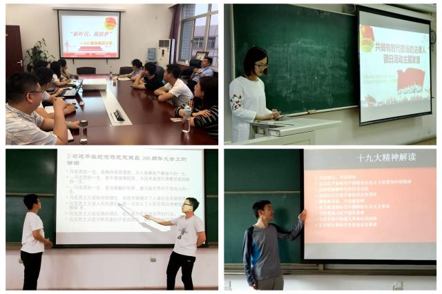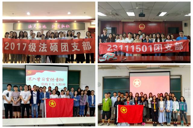 为深入贯彻落实党的十九大精神、习近平总书记系列重要讲话精神,认真学习贯彻习总书记5月2日在北大师生座谈会上的重要讲话,法学院于2018年4月至6月,组织全体非毕业年级基层团支部开展了“凝聚青春力量,共谱新时代华章”主题团日活动,以全面加强基层团组织建设和思想引领工作,团结引领广大团员青年听党话、跟党走,树立崇高理想,肩负复兴中华民族的伟大使命。