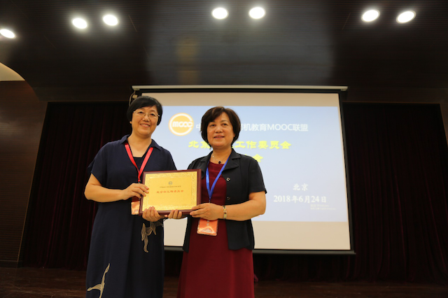中国高校计算机教育MOOC联盟副秘书长、清华大学刘强教授代表联盟向北京市工作委员会授牌,北京市工作委员会主任、365bet体育投注官网李凤霞教授代表工委接受了联盟授牌。李凤霞教授介绍了北京市工作委员会的情况和下一步的工作计划。